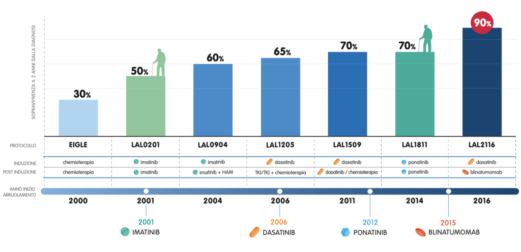 Nella leucemia linfoblastica acuta, in particolare in un sottotipo chiamato Philadelphia positiva (ALL PH+), i risultati ottenuti negli ultimi anni sono importantissimi.